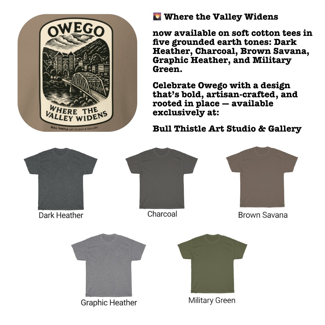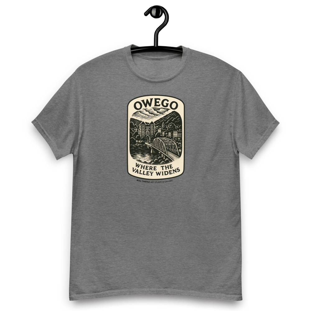 Owego “Where the Valley Widens” Linographic Unisex Tee