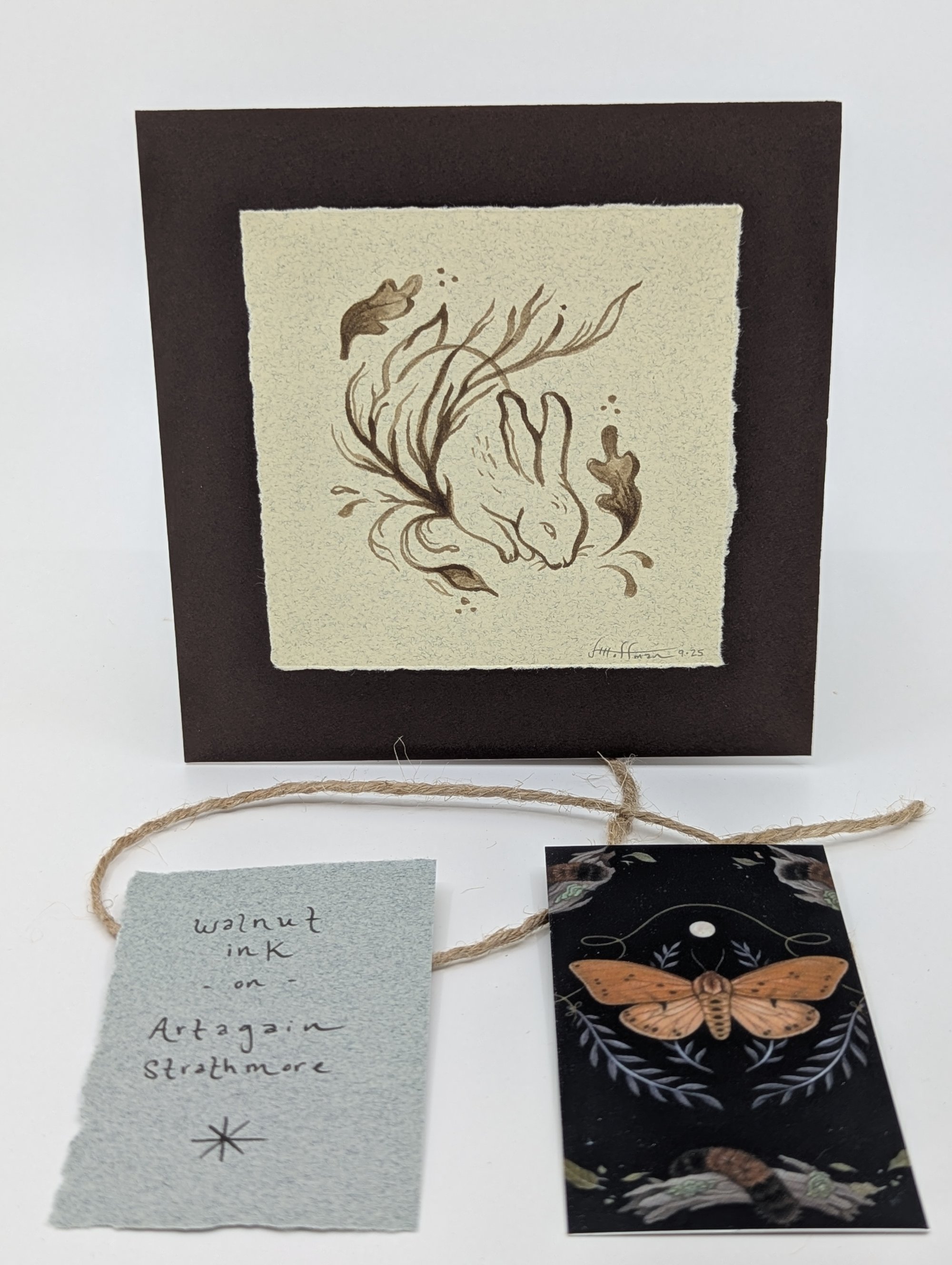 Created with handmade walnut ink on deckled Strathmore paper and mounted on mat board, each 5" x 5" piece in this limited series carries the warmth of earthbound materials and the mystery of lost folklore.