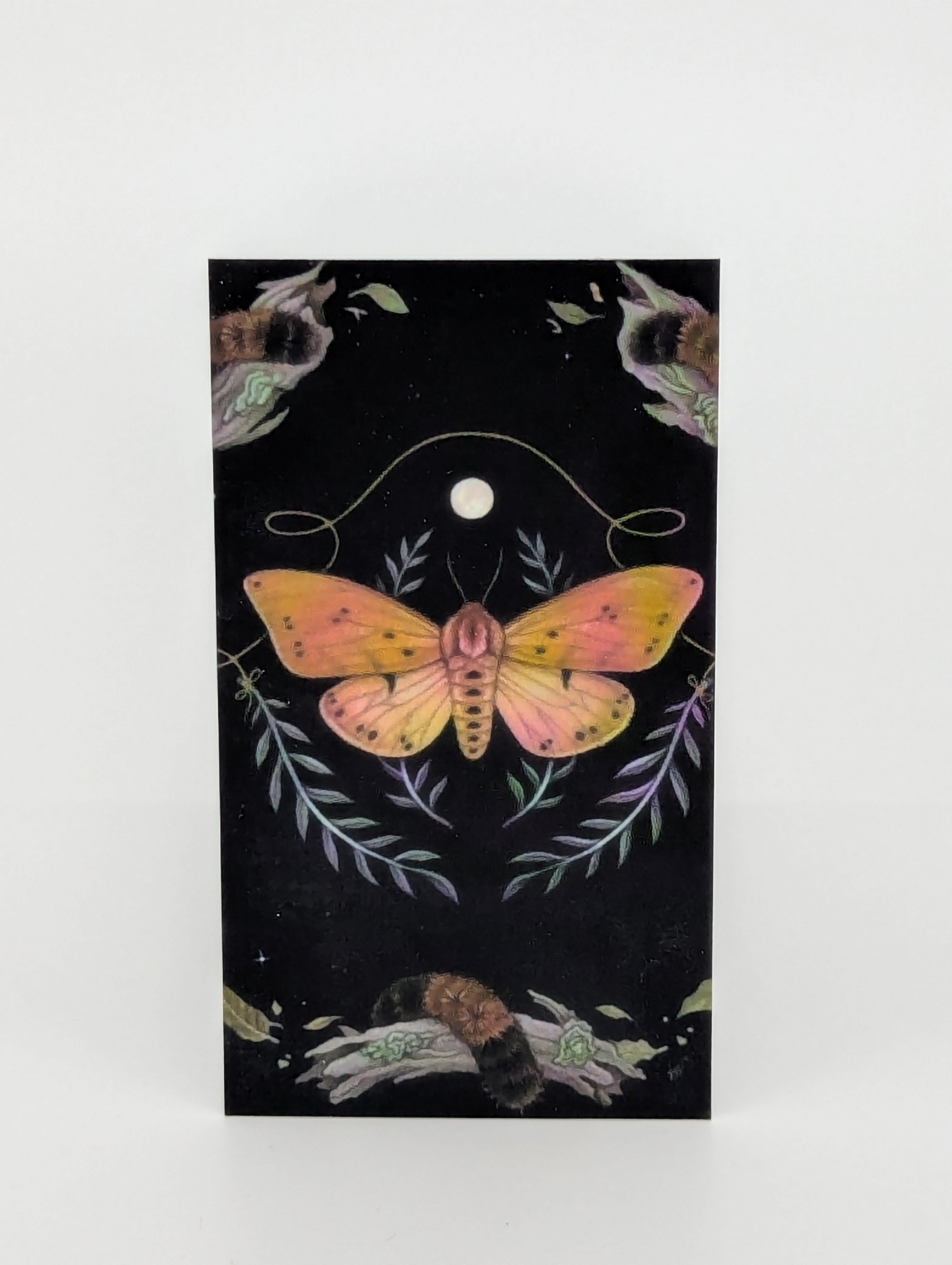 Jill Hoffman, a beloved artist from the Ithaca area, is known for her delicate yet powerful imagery—illuminating ethereal fables and conjuring otherworldly creatures that feel both timeless and alive. These works invite the viewer into dreamlike woodland realms, where hares leap beneath lunar shadows and branches curl like whispers of myth.